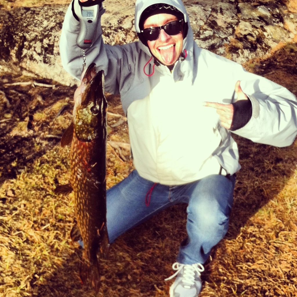 Dagens fiske liknade i stort sett fredagens, några puffar på betena men inte mer. Så hojtar Lukas att han har napp, missar mothugget och kastar ut igen. Då smäller det. Kampen är ojämn, gäddorna är slöa och väntar på varmt vatten och att leken skall börja. Lukas landar dock sitt livs största gädda, 3910 gram. Grattis! Betet som visade sig vara vägvinnande var återigen Buster Jerk.