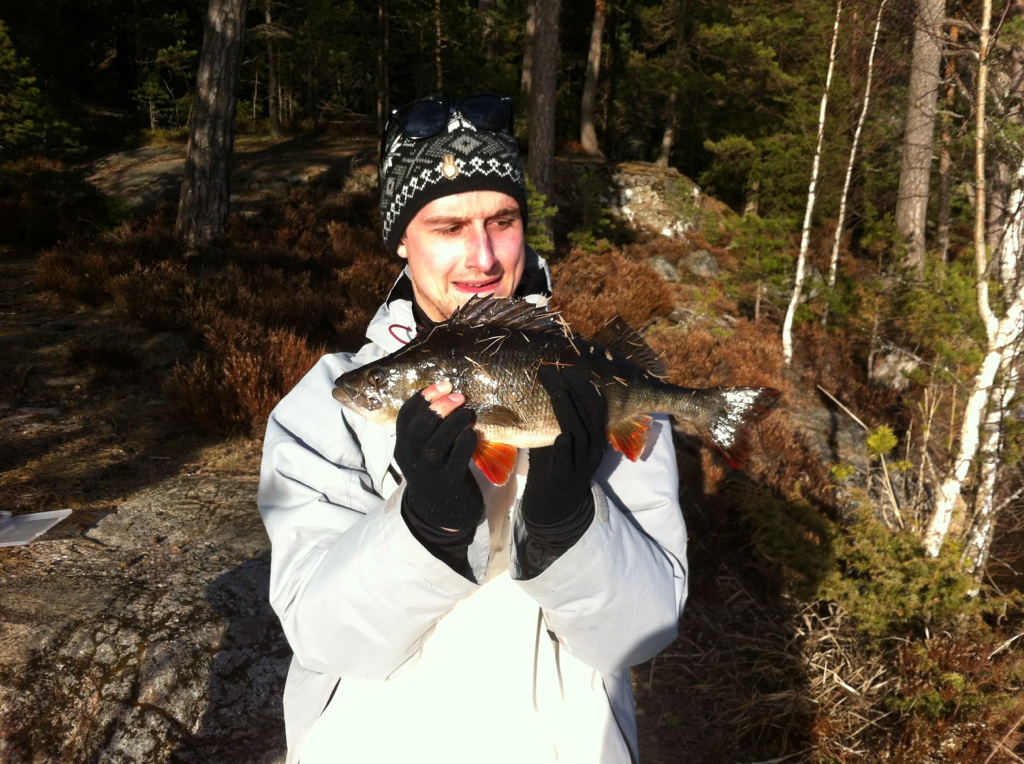 Under fredagen såg det länge ut som om alla skulle gå bet på sjöns juveler. Vädret blev sämre och solen sjönk på himlen. Emil och Jonathan hade redan packat ihop prylarna men Lukas slet på. Och skam den som ger sig, runt 19-tiden smäller det på Lukas Buster Jerk. Besviken ropar Lukas att det är en liten gädda. Han vevar in och upp ur det mörka vattnet kommer den största abborren vi hittills har skådat, 1180 gram! Nytt personbästa med råge.